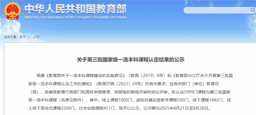 8月21日,教育部高等教育司发布了《关于第三批国家级一流本科课程认定结果的公示》。我院申报的课程《政治经济学》成功入选。《政治经济学》课程负责人为李媛媛副教授,团队成员包括李贵平、陈通和李睿老师。